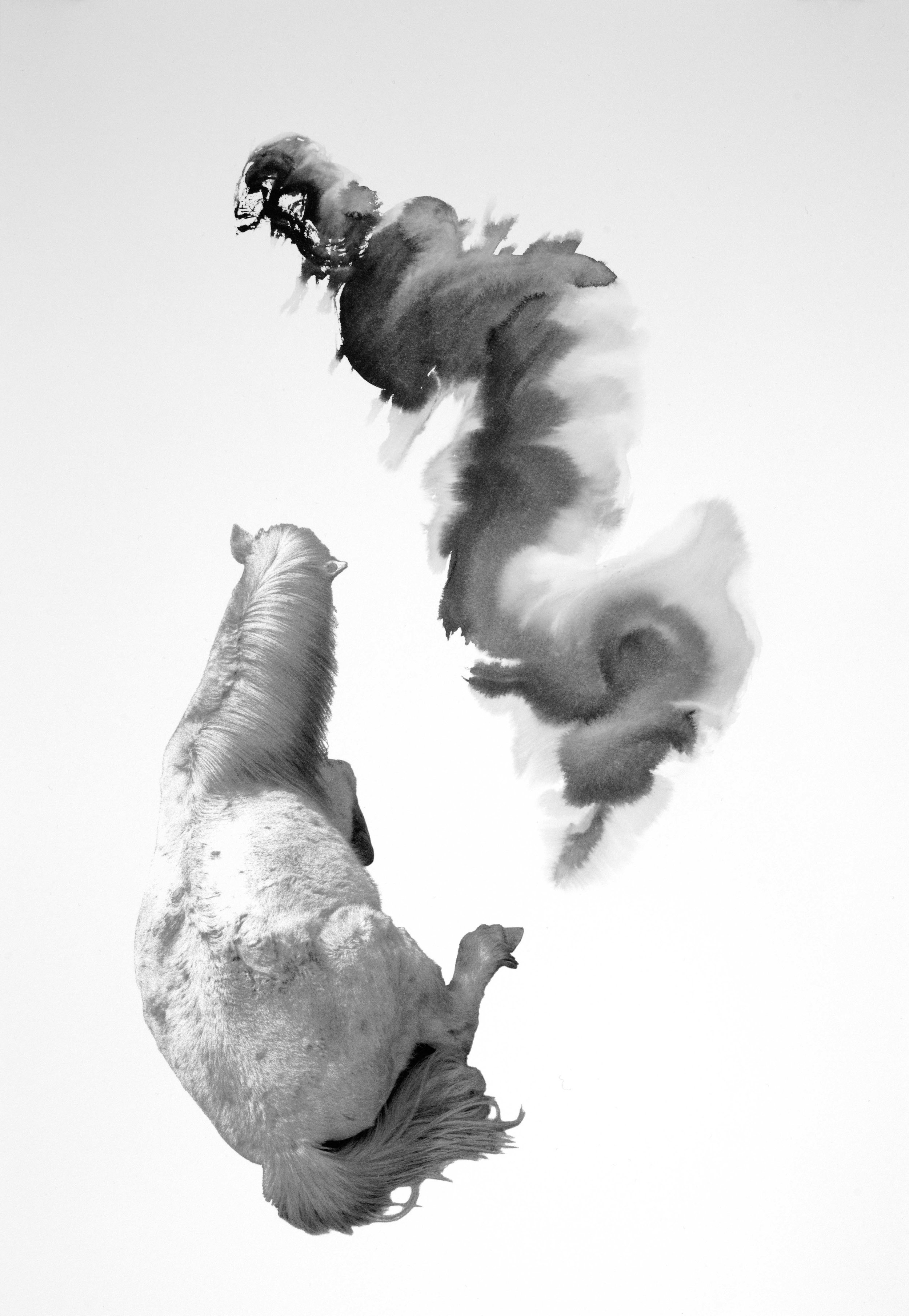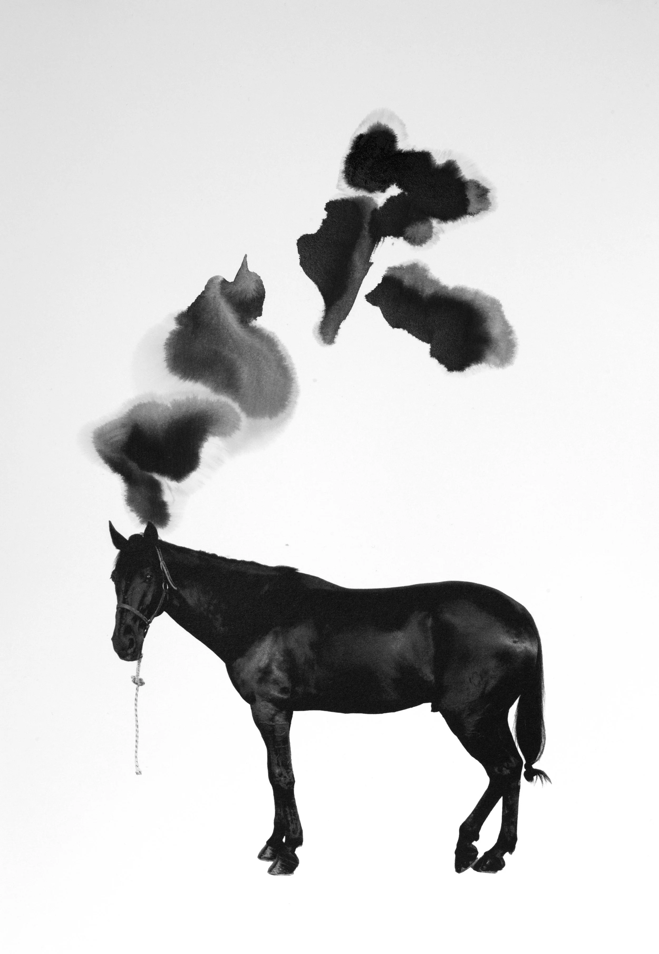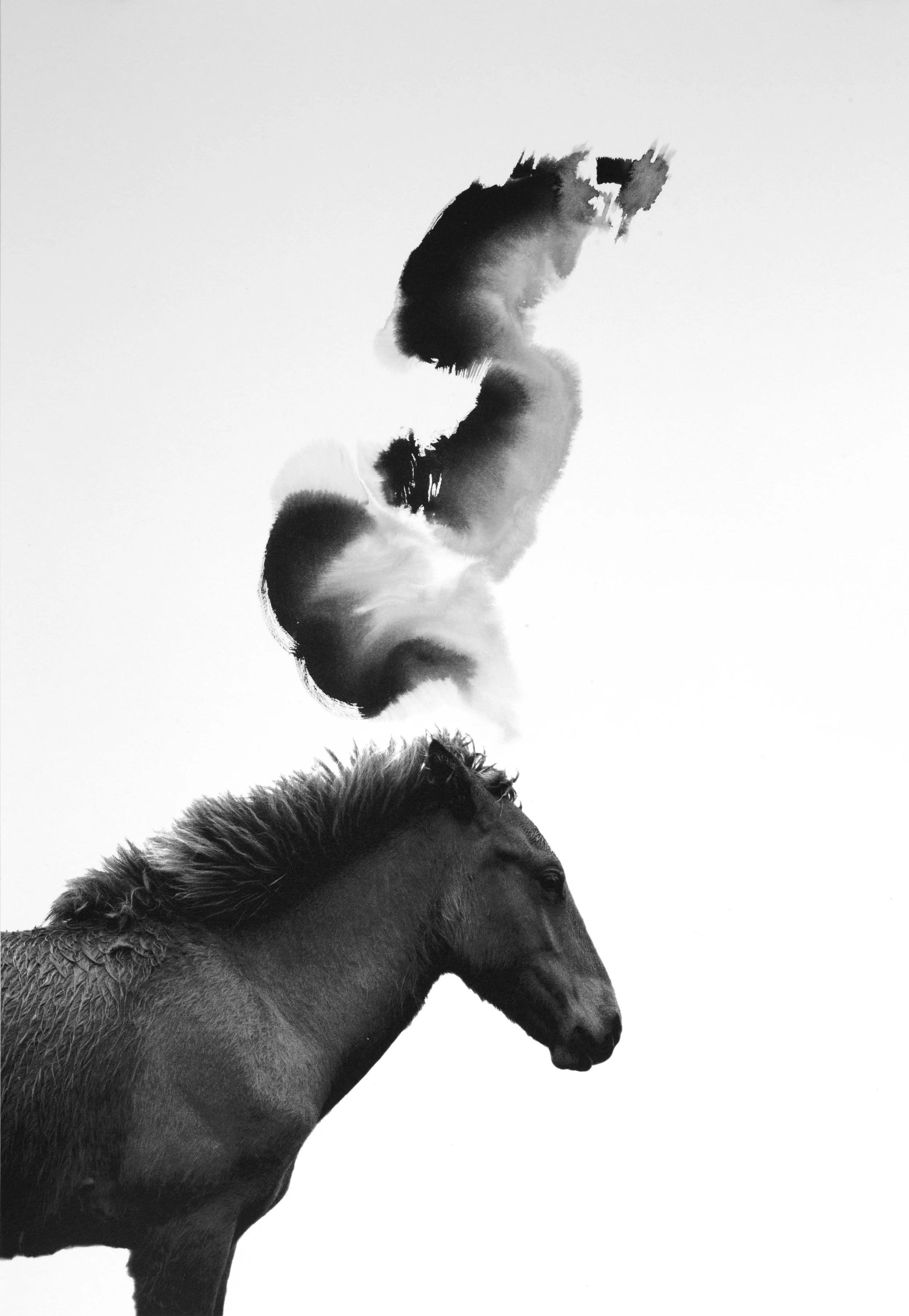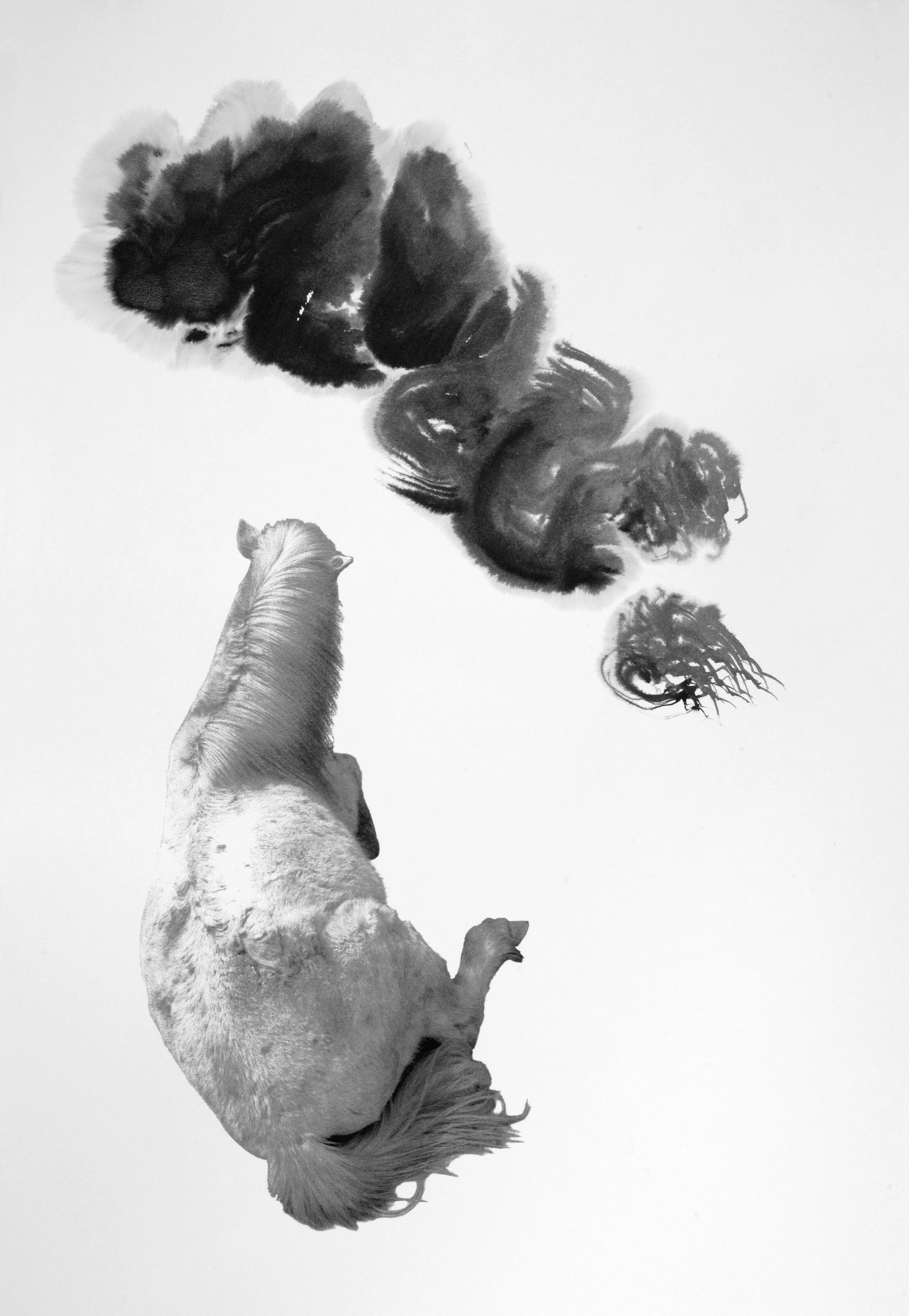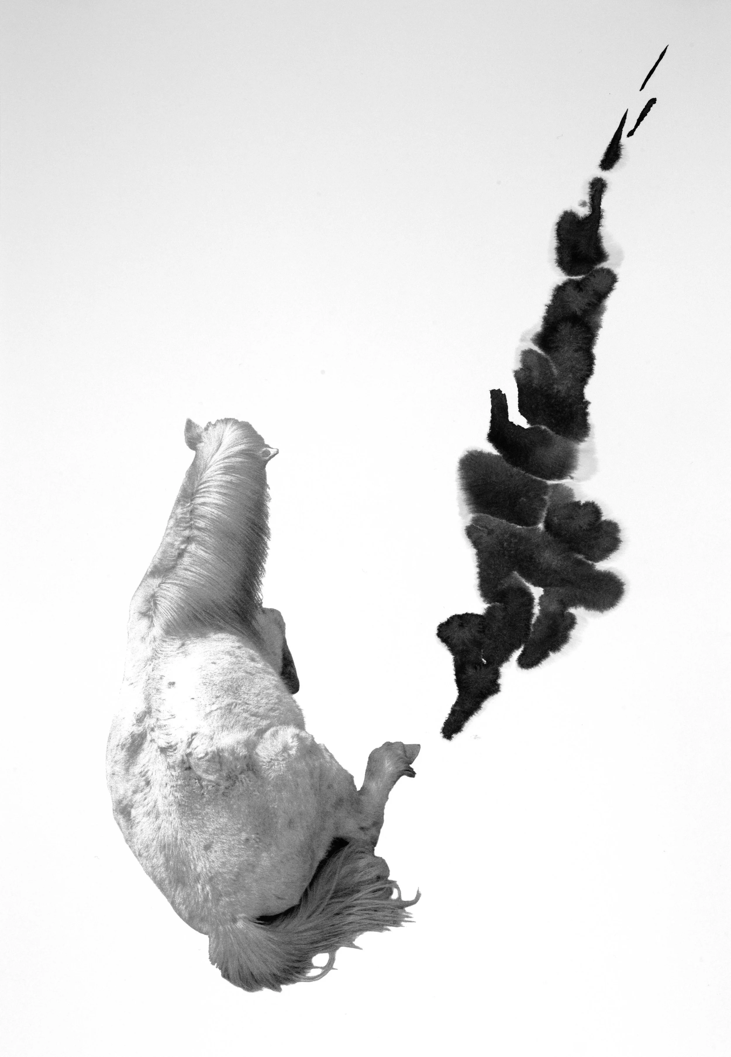This suite of three horses — Noir, Gris, and Blanc — evolved from Dumas’ extensive engagement with the horses of Japan and Okinawa. Each horse image is serigraph-printed by hand onto Kakita, a cotton Japanese paper developed specifically for printmaking. Reminiscent of sumi-e drawing, Dumas has applied brushwork to the prints, making each unique. There are fourteen to sixteen variations of each horse.
