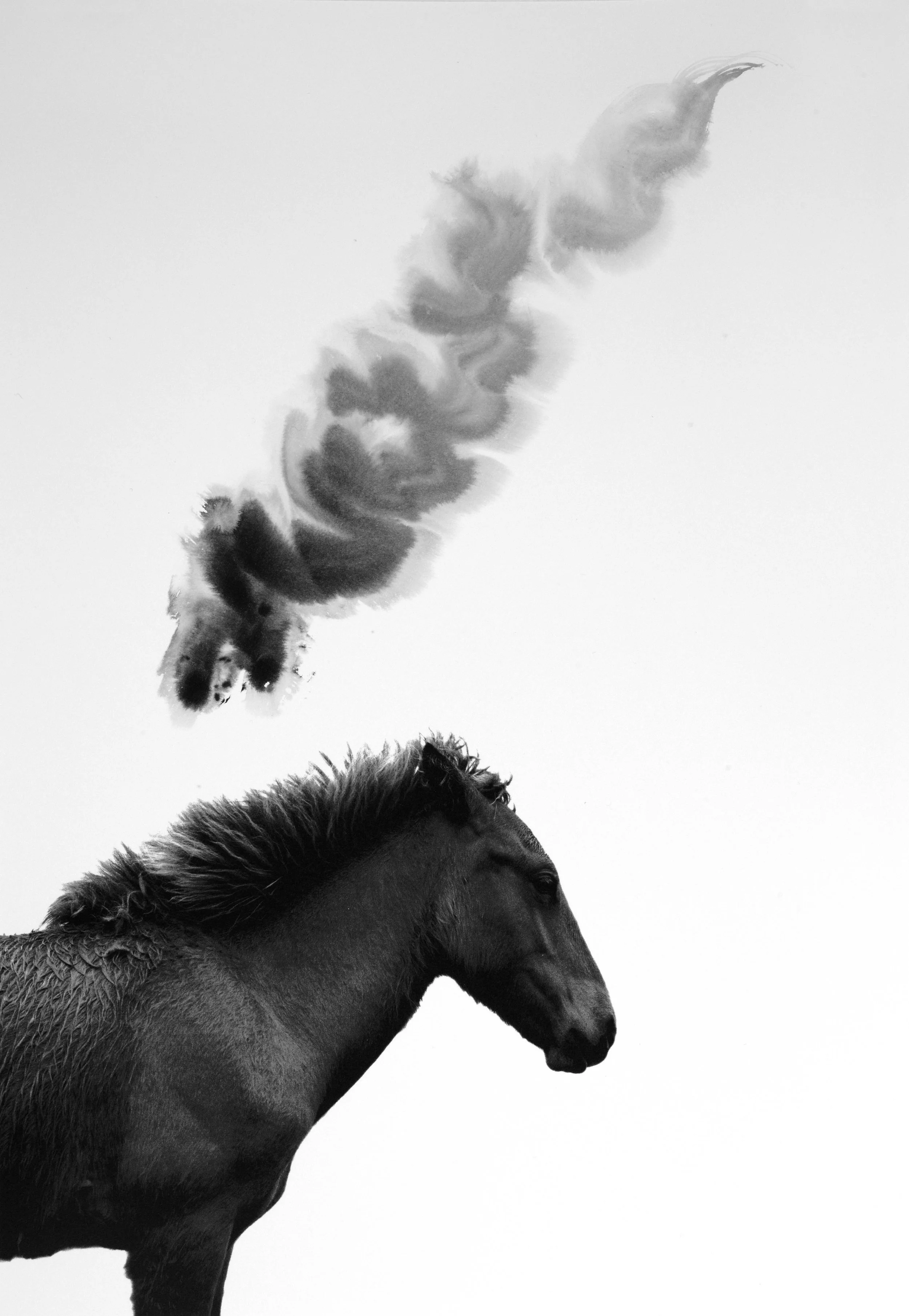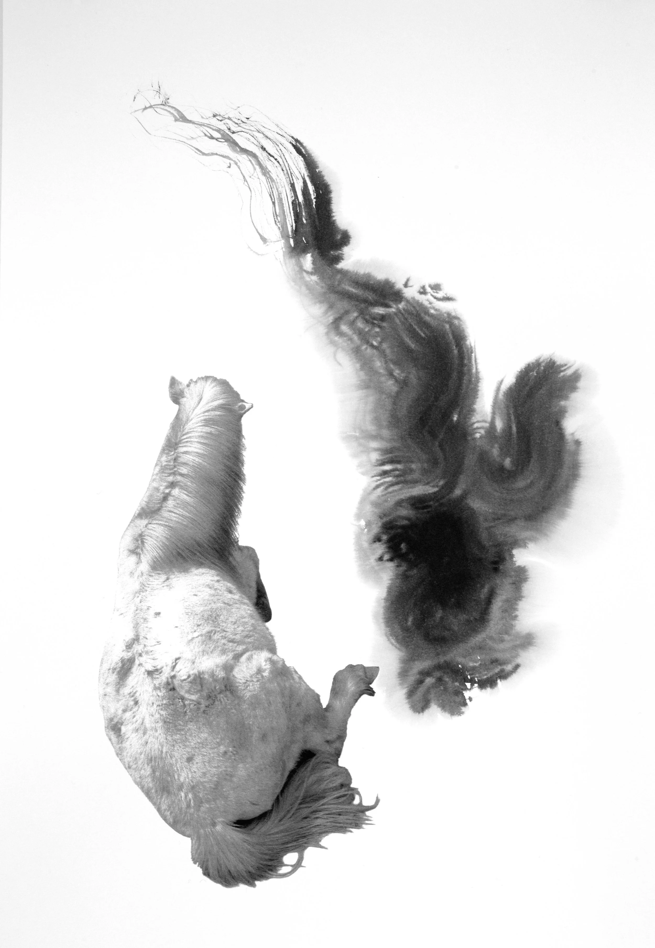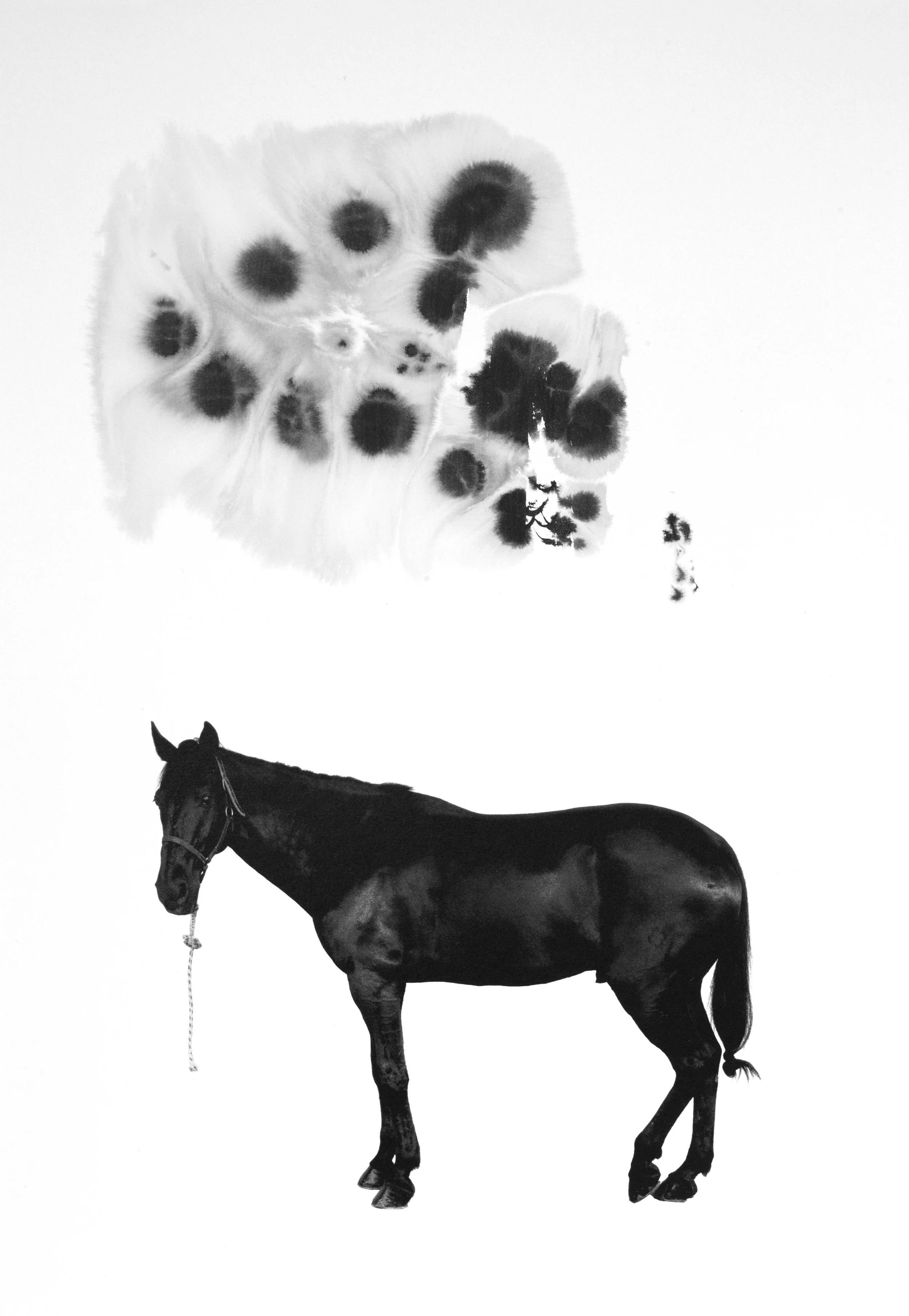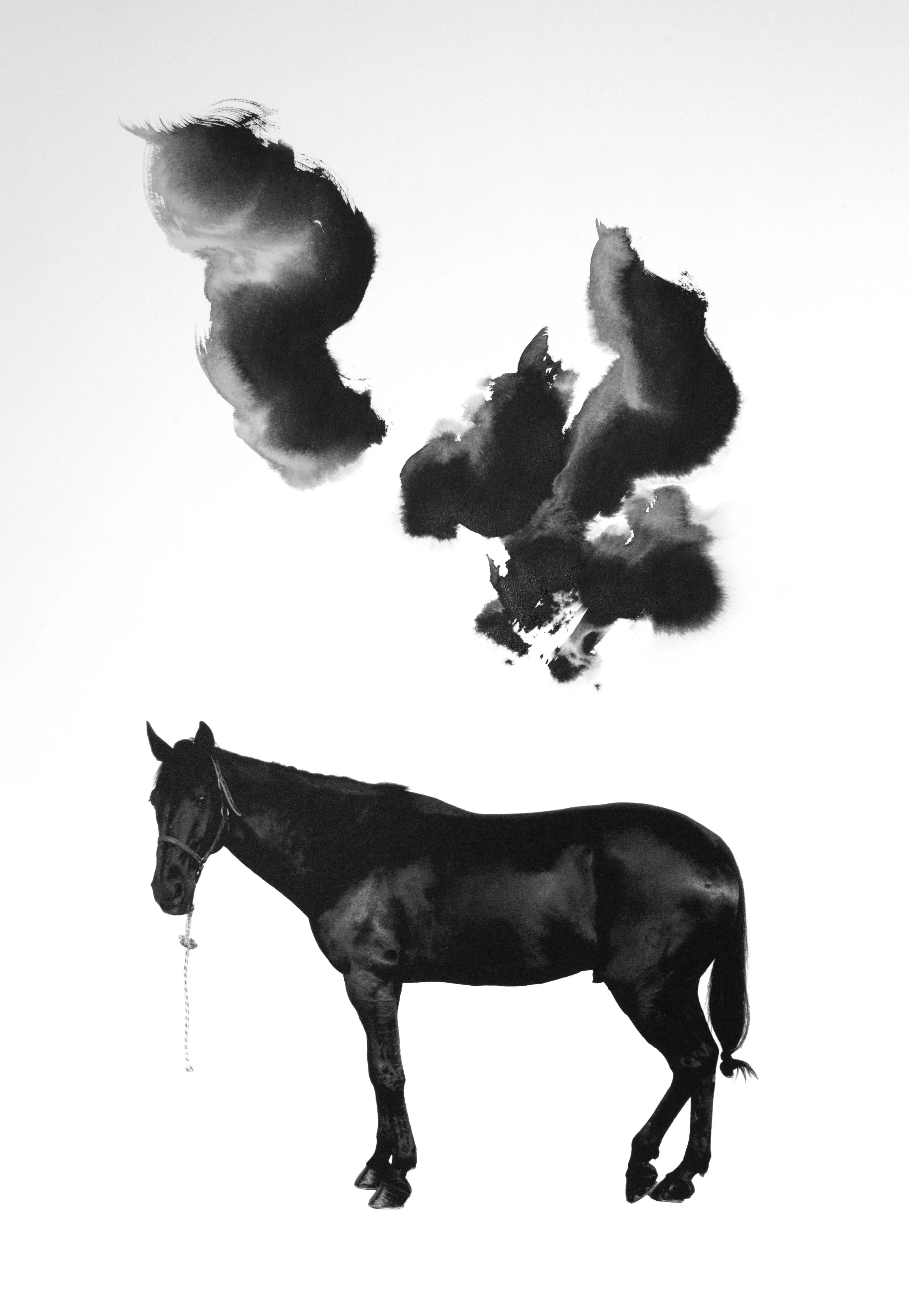 This suite of three horses — Noir, Gris, and Blanc — evolved from Dumas’ extensive engagement with the horses of Japan and Okinawa. Each horse image is serigraph-printed by hand onto Kakita, a cotton Japanese paper developed specifically for printmaking. Reminiscent of sumi-e drawing, Dumas has applied brushwork to the prints, making each unique. There are fourteen to sixteen variations of each horse.