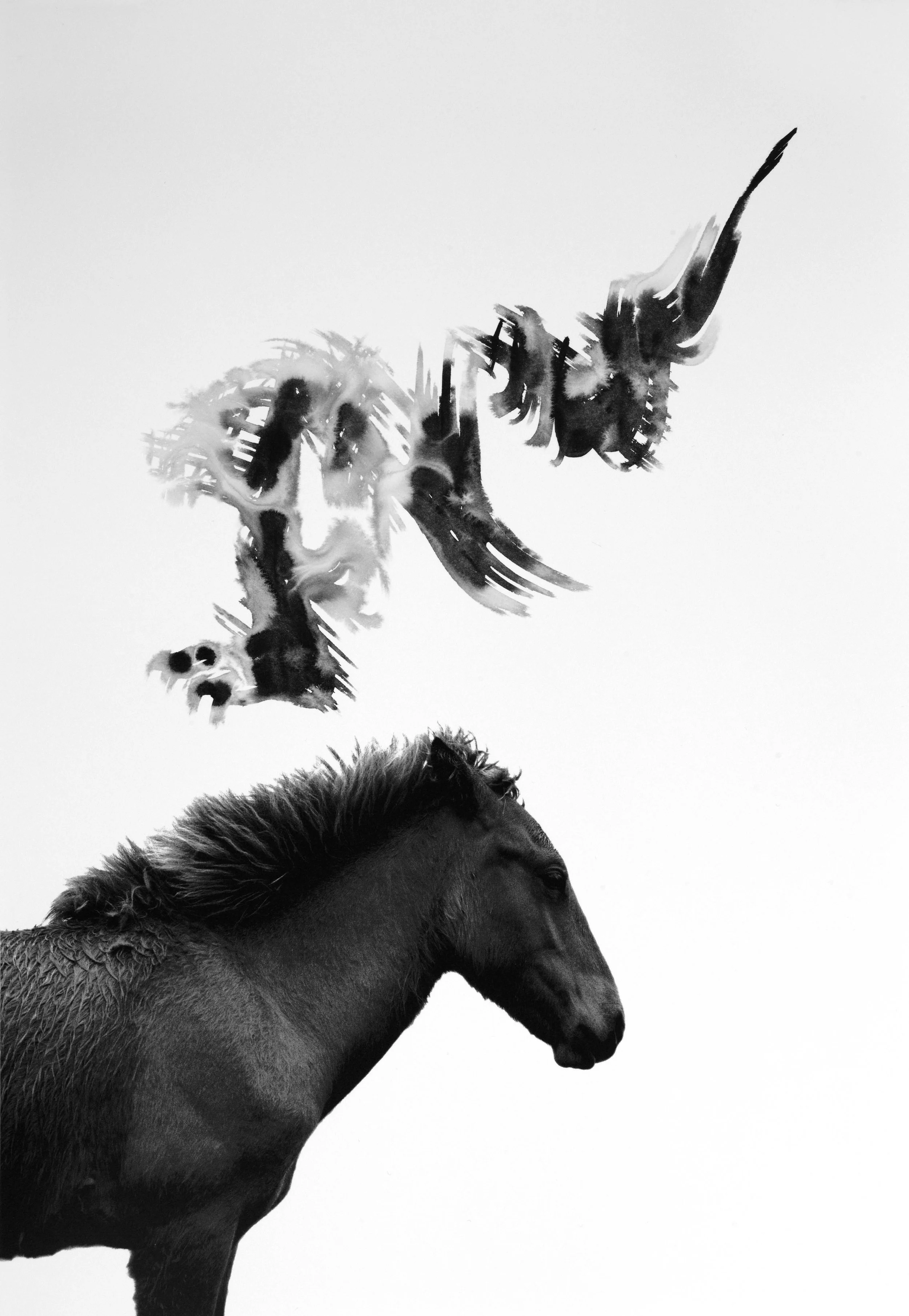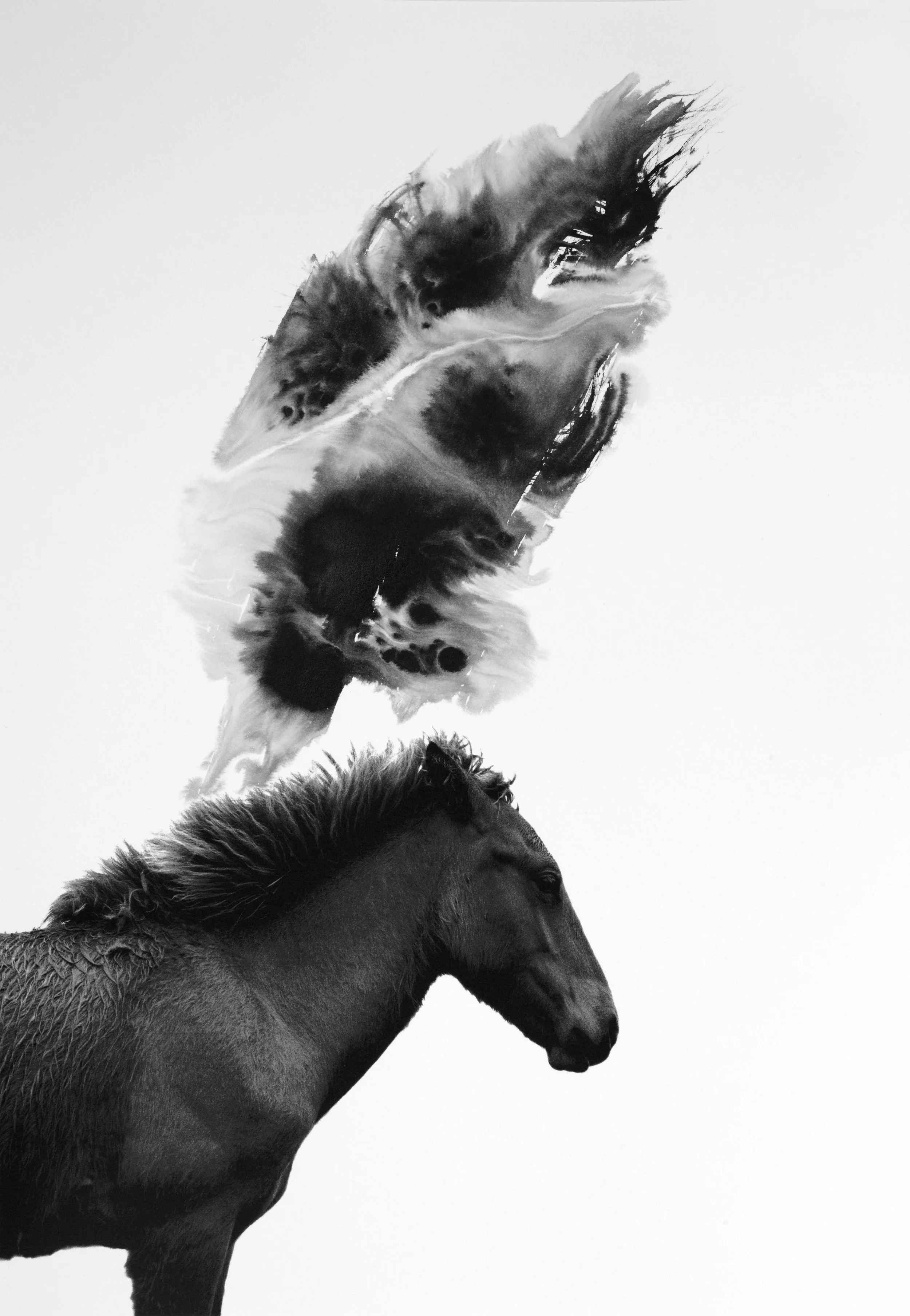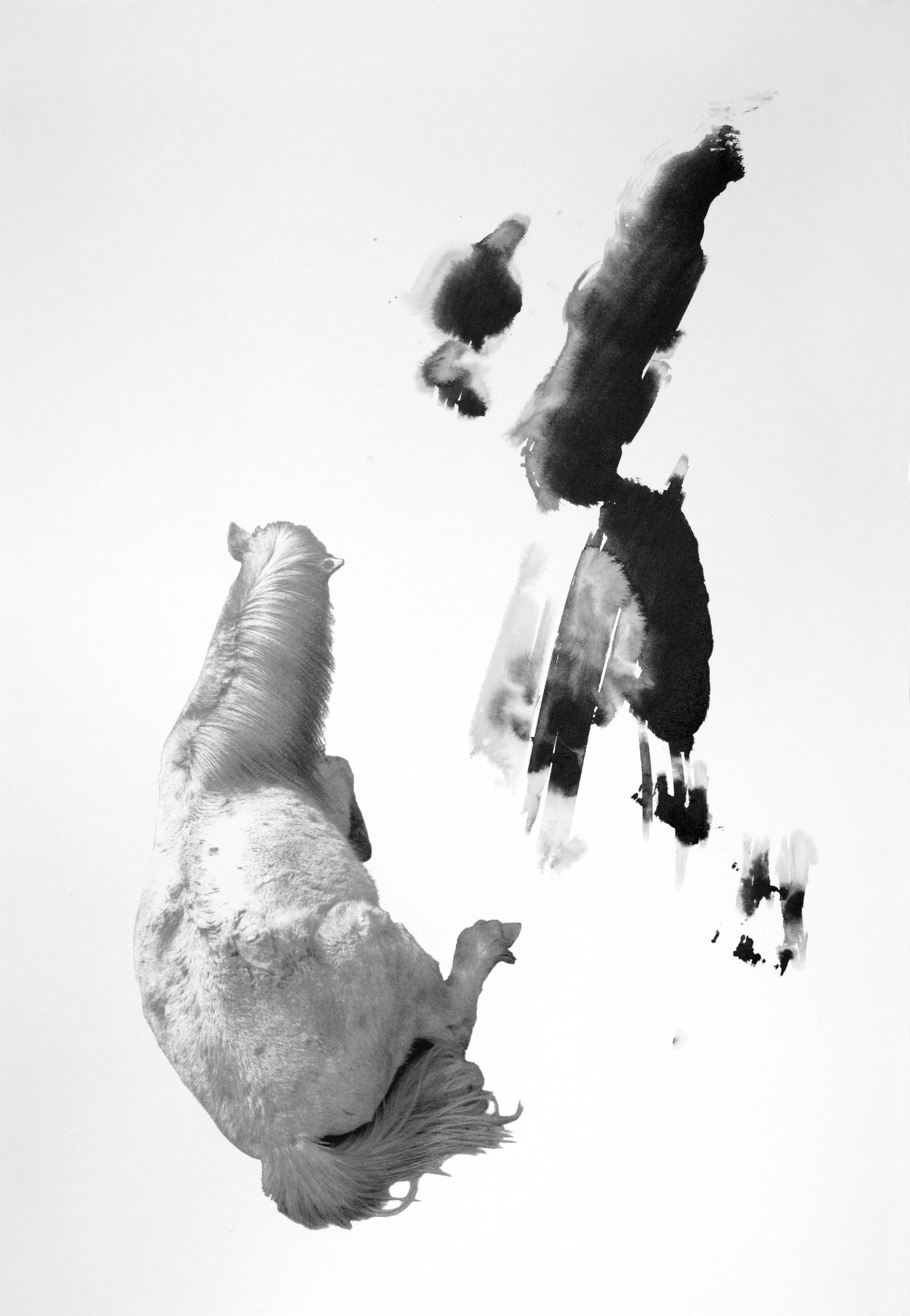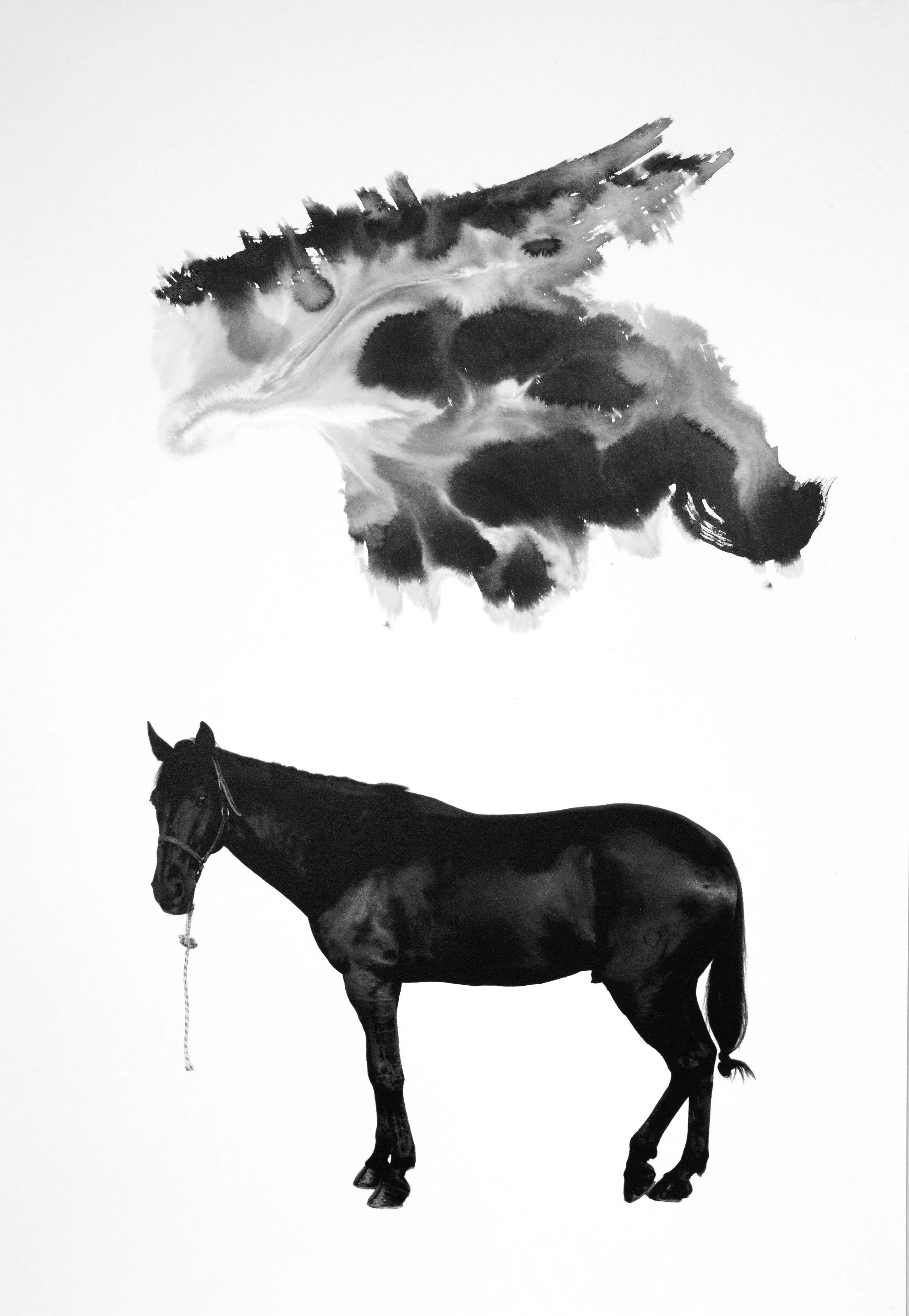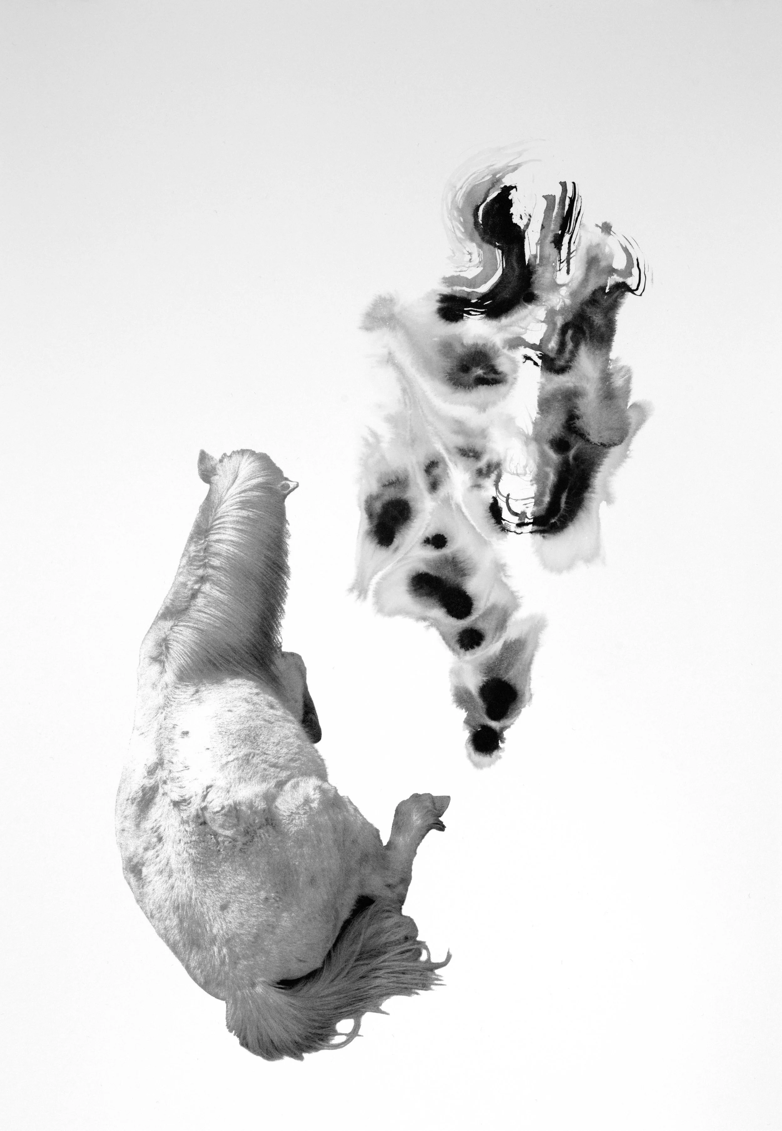This suite of three horses — Noir, Gris, and Blanc — evolved from Dumas’ extensive engagement with the horses of Japan and Okinawa. Each horse image is serigraph-printed by hand onto Kakita, a cotton Japanese paper developed specifically for printmaking. Reminiscent of sumi-e drawing, Dumas has applied brushwork to the prints, making each unique. There are fourteen to sixteen variations of each horse.